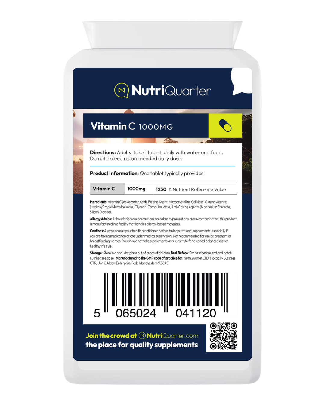 • Each tablet provides 1000mg of Vitamin C (1250% NRV) as ascorbic acid.